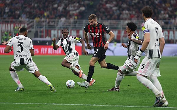 下半场萨勒马克尔斯中框,最终AC米兰与尤文图斯战成0-0平。