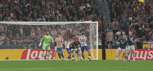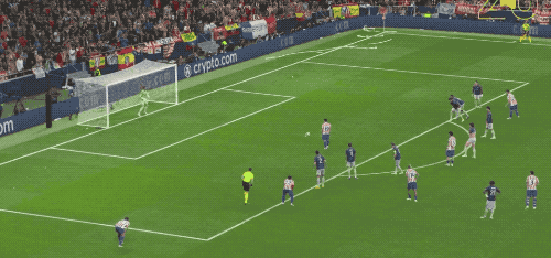 第49分钟,马竞获得任意球,阿尔瓦雷斯的射门绕过人墙,皮球击中边网。